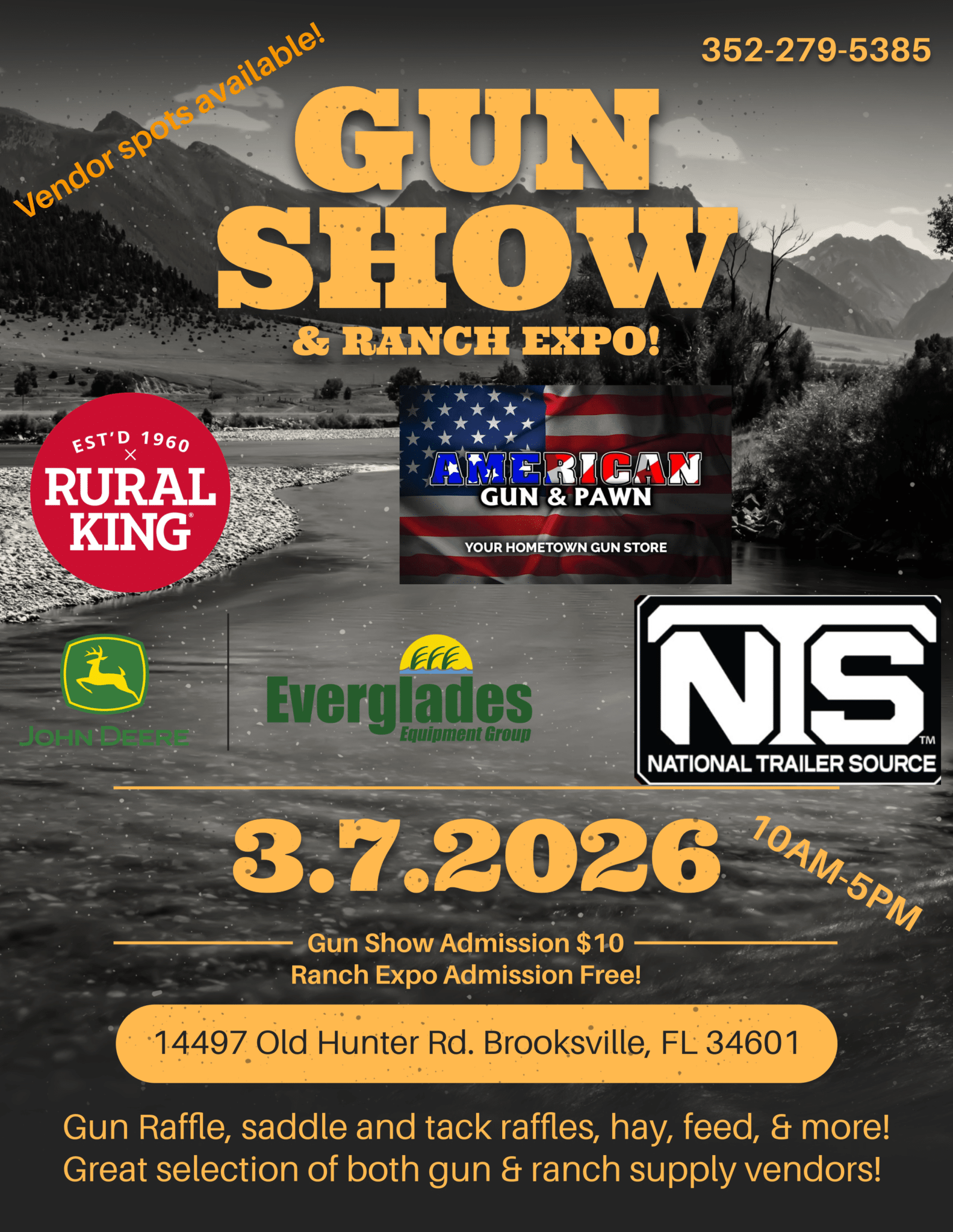 The Brooksville Gun Show & Ranch Expo will be held on Mar 7th, 2026 in Brooksville, FL. This Brooksville gun show is held at Dan Post Quarter Horses and hosted by Dan Post Quarter Horses. All federal and local firearm laws and ordinances must be obeyed.