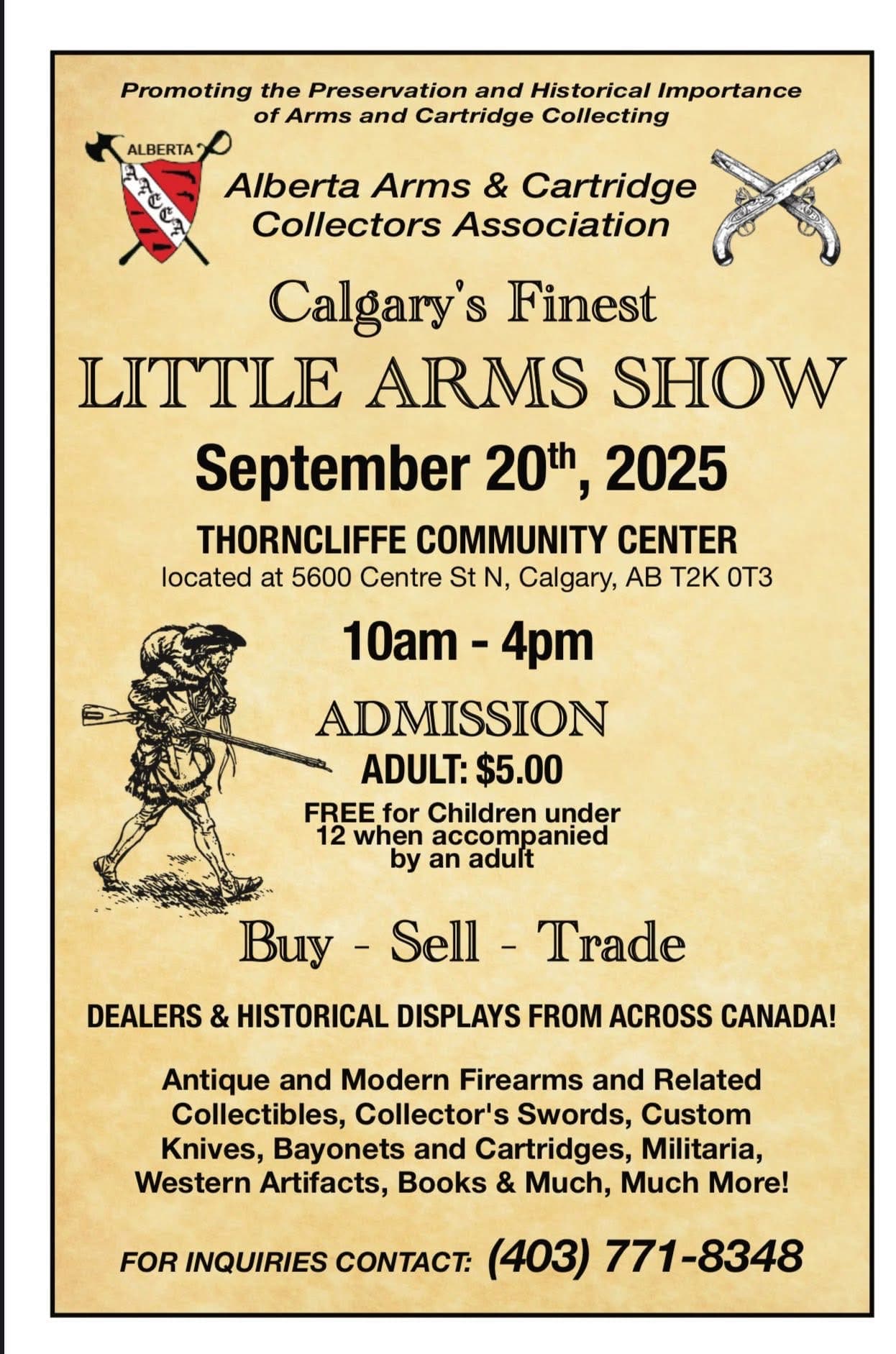 The Calgary’s Finest Little Arms Show currently has no upcoming dates scheduled in Calgary, AB. This Calgary gun show is held at Thorncliffe Community Center and hosted by Alberta Arms & Cartridge Collector. All federal and local firearm laws and ordinances must be obeyed.