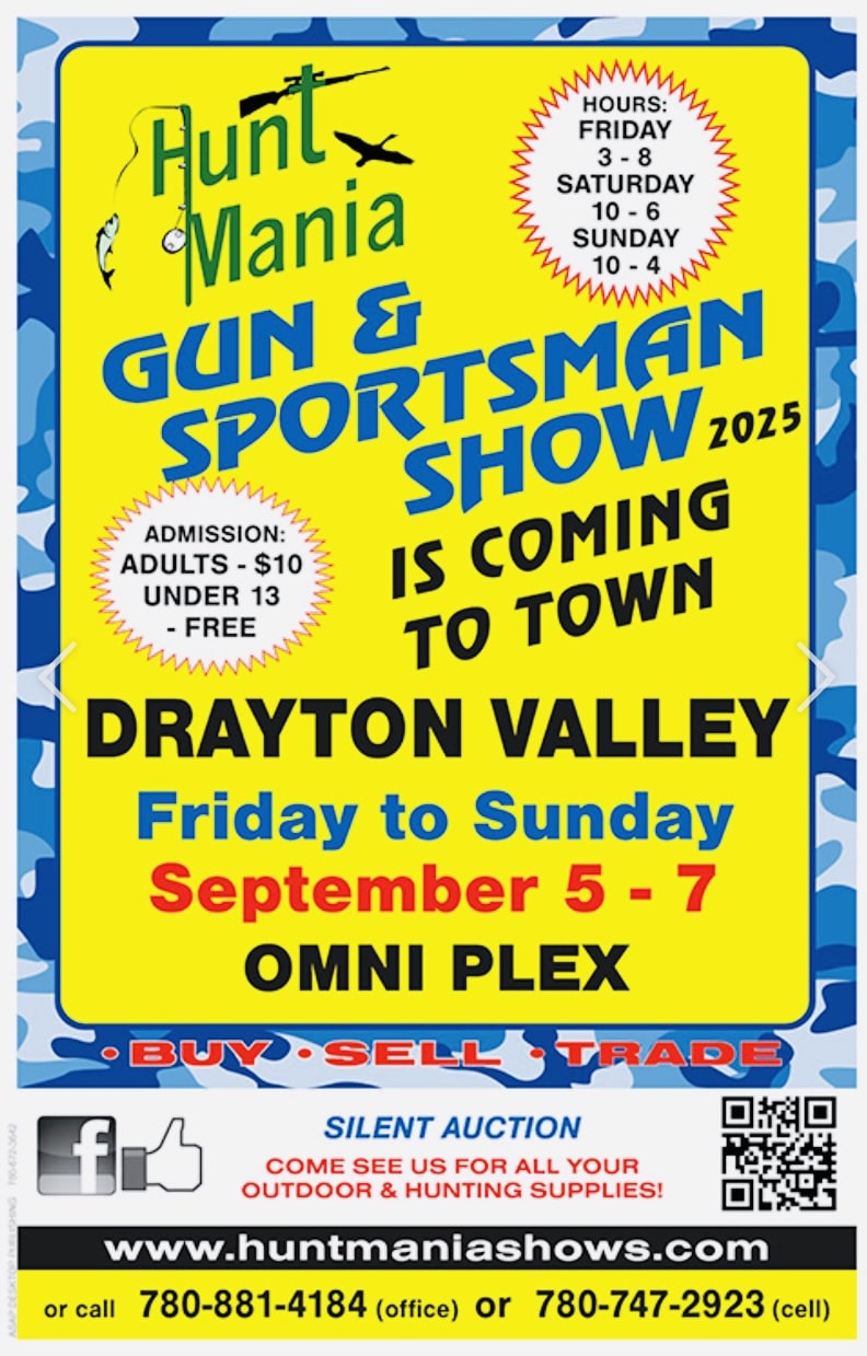 The Drayton Valley Gun Show currently has no upcoming dates scheduled in Drayton Valley, AB. This Drayton Valley gun show is held at Omniplex and hosted by Drayton Valley Gun Show & Hunt Mania Show Productions. All federal and local firearm laws and ordinances must be obeyed.