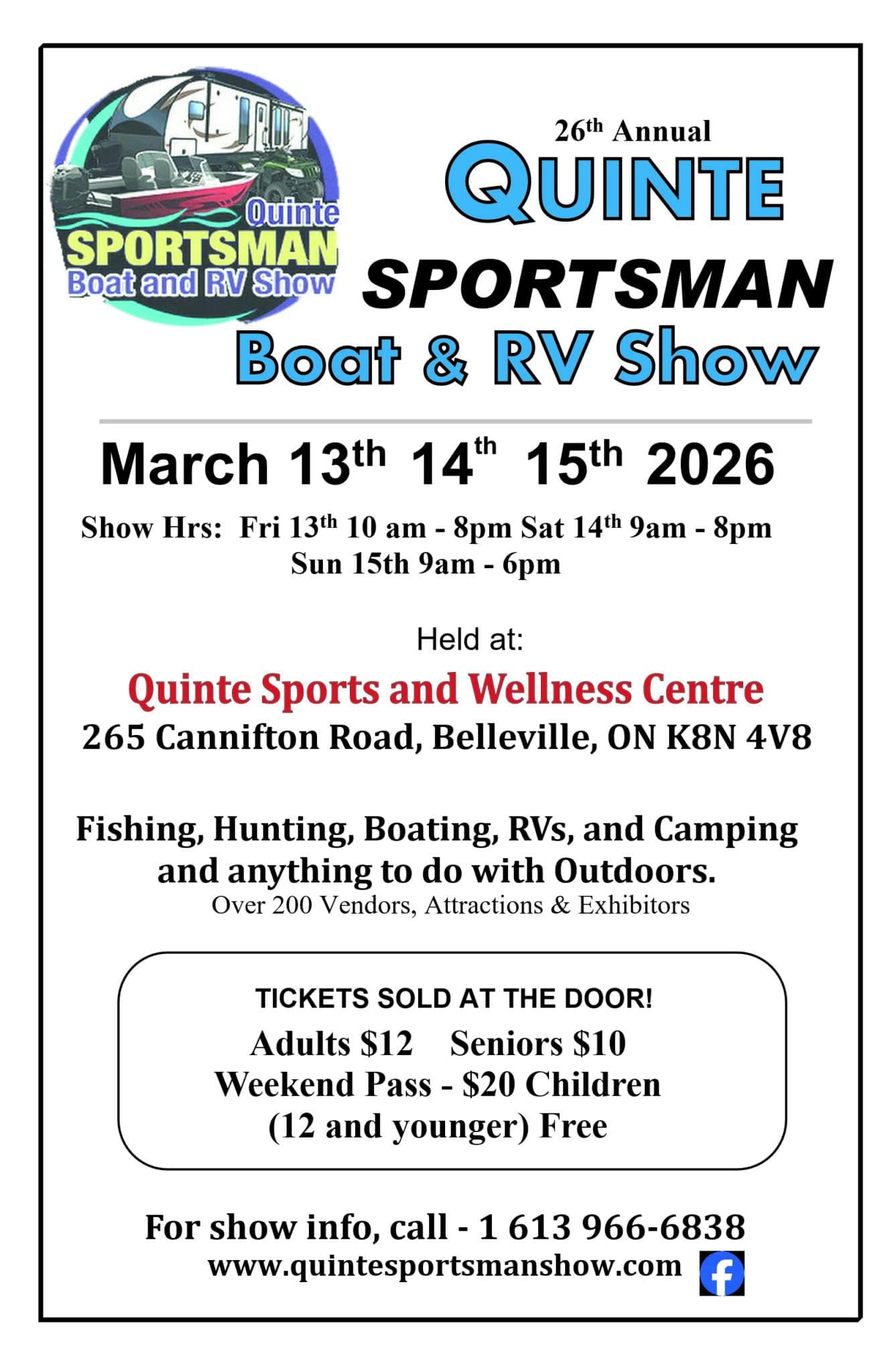 We invite you to our 26th Annual Quinte Sportsman Boat and RV Show