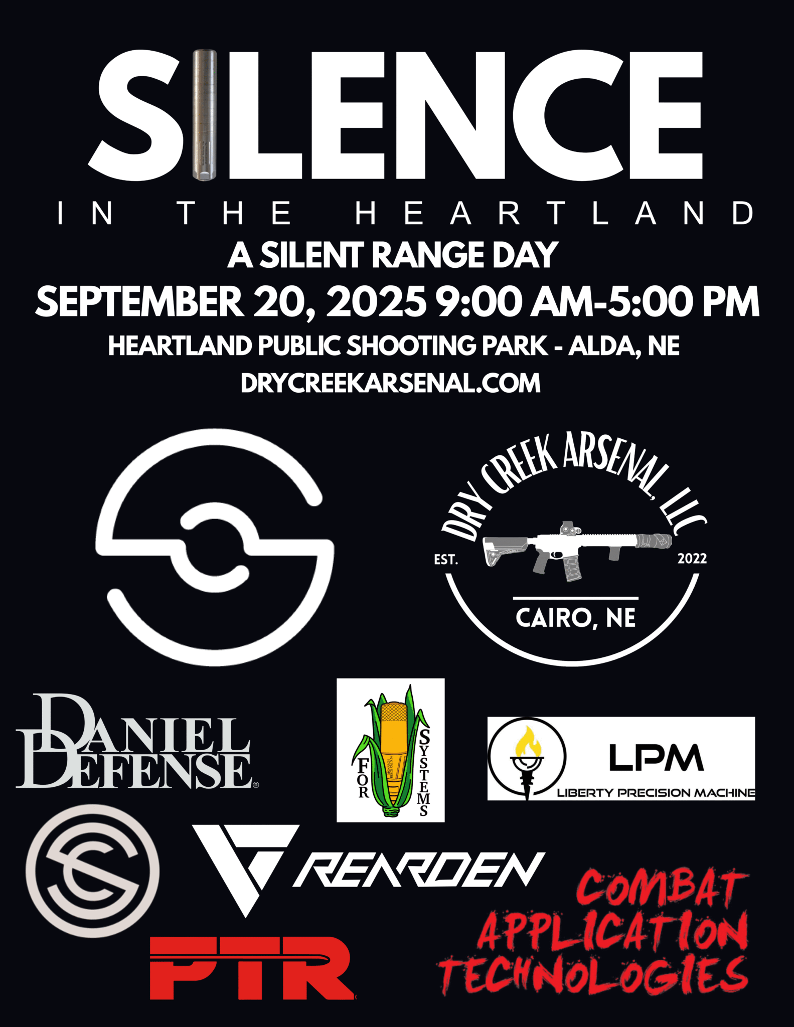 Dry Creek Arsenal in Cairo, Nebraska is putting on a silent range day! Silence in the Heartland will be coming to Heartland Public Shooting Park on September 20, 2025 from 9 AM to 5 PM.